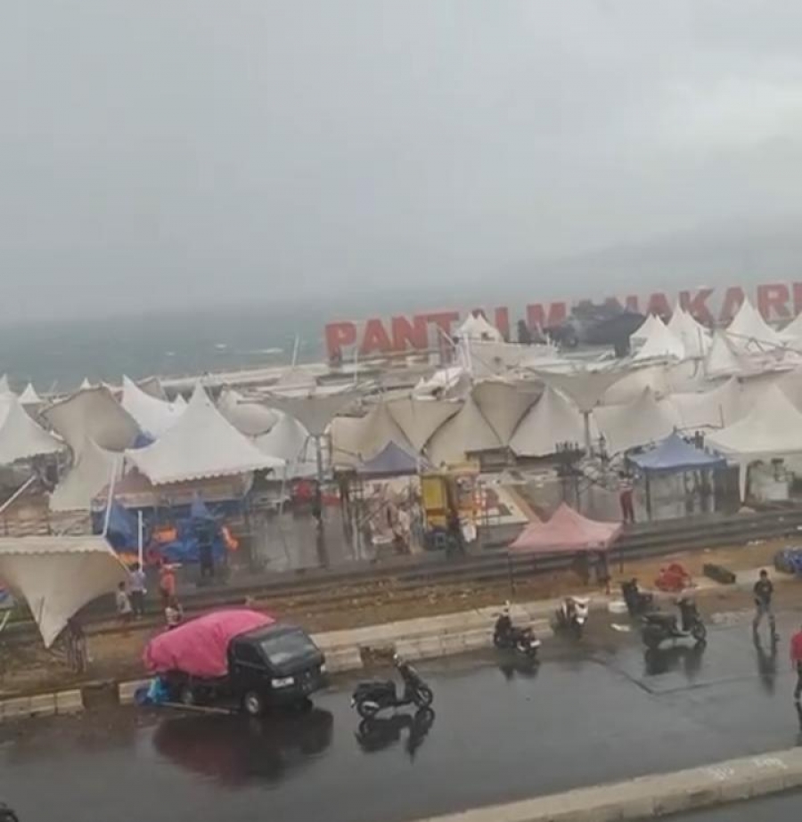 Tenda dan panggung kegiatan Mamuju Festival di Anjungan Manakarra Mamuju rusak dan roboh akibat terpaan angin kencang.