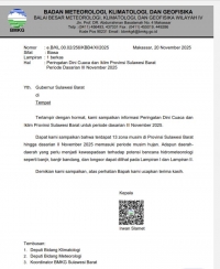Informasi ini menjadi dasar BPBD Sulbar dalam memperkuat kesiapsiagaan terutama pada sektor kelautan dan pesisir yang berpotensi terdampak cuaca ekstrem.