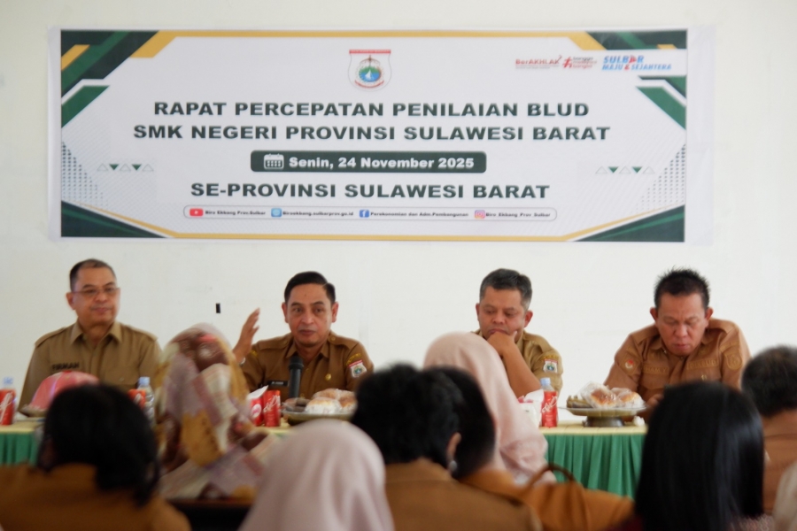 Mamuju — Badan Pengelolaan Keuangan dan Pendapatan Daerah (BPKPD) Provinsi Sulawesi Barat (Sulbar) terus melakukan pengawasan pengelolaan keuangan. Salah satunya dengan menghadiri Rapat Percepatan Penilaian Badan Layanan Umum Daerah (BLUD) pada SMK Negeri di Sulbar, yang diselenggarakan Biro Perekonomian dan Administrasi Pembangunan Setda Sulbar pada Senin, 24 November 2025 pukul 09.00 WITA.