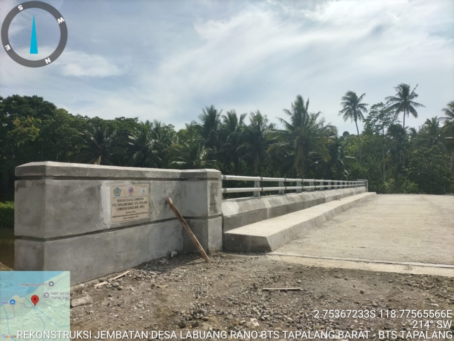 Mamuju — Pekerjaan fisik Jembatan S. Nipa-Nipa yang menghubungkan wilayah Tapalang – Tapalang Barat kini telah mencapai 100 Persen progres melalui program Hibah Rehabilitasi dan Rekonstruksi (Rehab-Rekon) BPBD Sulawesi Barat (Sulbar).