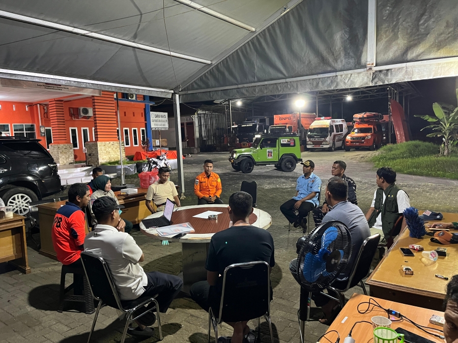 Mamuju - Kepala Bidang Kedaruratan dan Logistik BPBD Provinsi Sulawesi Barat (Sulbar), Arnidah, bersama Kepala Bidang Pencegahan dan Kesiapsiagaan, Swandy, memberikan arahan kepada Regu Satu Posko Siaga Darurat di Posko BPBD Sulbar, Selasa 02 Desember 2025, Pukul 19.15 Wita.