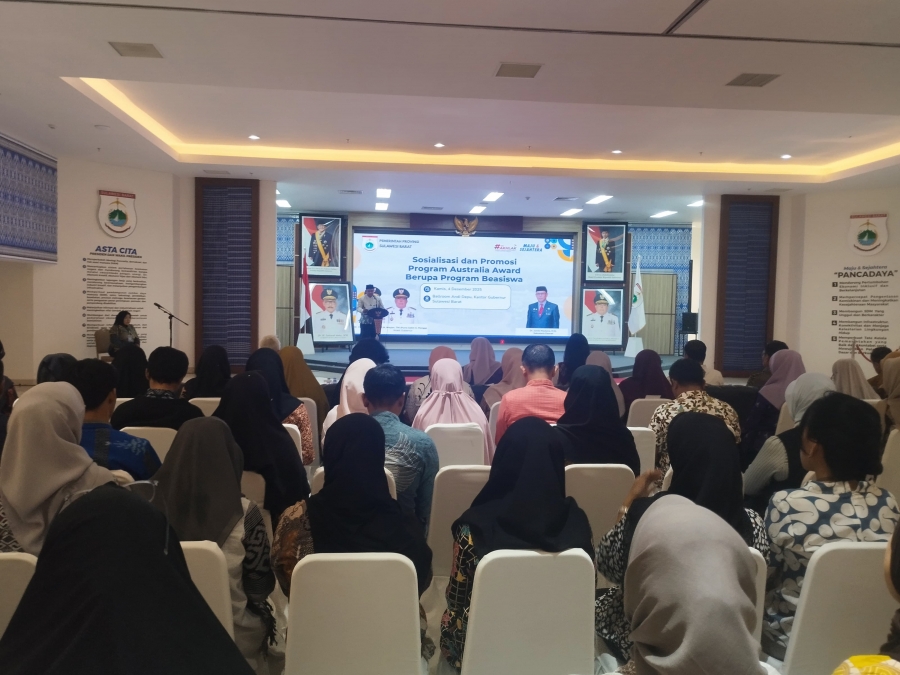 MAMUJU - Asisten Pemerintahan dan Kesejahteraan Rakyat (Kesra) Setda Provinsi Sulawesi Barat (Sulbar), Muhammad Jaun, mewakili Gubernur Sulbar, Suhardi Duka, menghadiri kegiatan sosialisasi dan promosi program beasiswa Australia Awards Indonesia (AAI) yang digelar di Mamuju, Kamis, 4 Desember 2025.