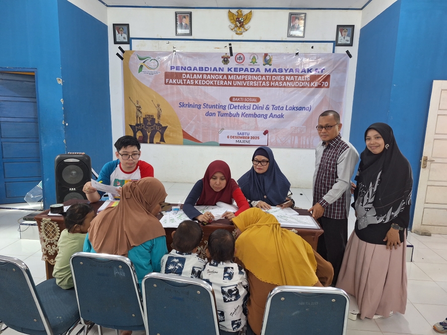 Majene - Upaya peningkatan kesehatan anak di Sulawesi Barat kembali diperkuat melalui kegiatan Pengabdian Kepada Masyarakat yang dilaksanakan oleh Fakultas Kedokteran Universitas Hasanuddin (Unhas) dalam rangka memperingati Dies Natalis FK Unhas ke-70. Kegiatan ini digelar pada Sabtu, 6 Desember 2025 di Majene dan mendapat dukungan penuh dari Dinas Kesehatan Provinsi Sulawesi Barat dan Pemerintah kabupaten Majene.
