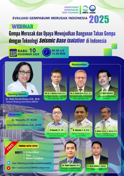 Kegiatan ini menghadirkan peneliti, akademisi, dan praktisi kebencanaan untuk membahas hasil evaluasi gempa merusak sepanjang tahun 2025 serta teknologi mitigasi yang dinilai semakin relevan bagi wilayah rawan gempa di Indonesia.