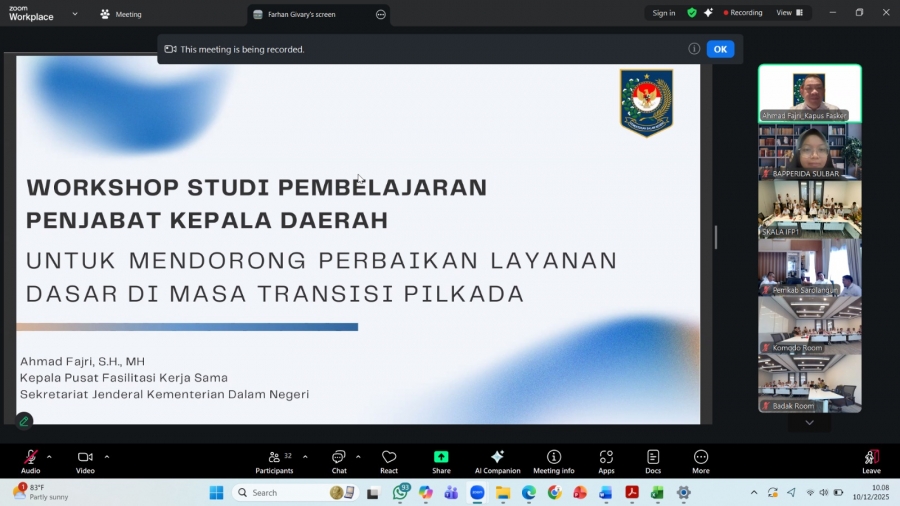 Mamuju – Badan Perencanaan Pembangunan, Riset dan Inovasi Daerah (Bapperida) Provinsi Sulawesi Barat mengikuti Workshop Studi Pembelajaran Penjabat Kepala Daerah Mendorong Perbaikan Layanan Dasar di Masa Transisi Pilkada secara virtual, Rabu (10/12/2025). Kegiatan diselenggarakan oleh Pusat Fasilitasi Kerja Sama Sekretariat Jenderal Kementerian Dalam Negeri.