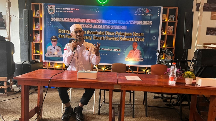 Mamuju – Pemerintah Provinsi Sulawesi Barat (Pemprov Sulbar) melalui Dinas Pekerjaan Umum dan Penataan Ruang (PUPR) menggelar Sosialisasi Peraturan Daerah (Perda) Nomor 3 Tahun 2025 tentang Jasa Konstruksi, bertempat di Café Ruang Rindu, Mamuju, Rabu 8 Oktober 2025.