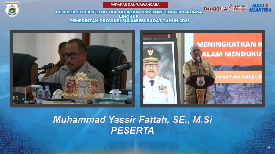 Mamuju – Plt. Kepala Badan Perencanaan Pembangunan, Riset, dan Inovasi Daerah (Bapperida) Sulawesi Barat, Darwis Damir, mengikuti tahapan akhir Seleksi Terbuka Pengisian 12 Jabatan Pimpinan Tinggi (JPT) Pratama di lingkungan Pemerintah Provinsi Sulawesi Barat. Tahapan tersebut berupa paparan dan wawancara yang digelar pada Senin, 15 Desember 2025. Darwis menyampaikan, wawancara pada tahap akhir ini dilaksanakan langsung oleh Gubernur Sulbar Suhardi Duka, Wakil Gubernur Mayjen TNI (Purn) Salim S. Mengga, serta Sekretaris Daerah Provinsi Sulbar , Junda Maulana. Menurutnya, proses tersebut bertujuan untuk mengukur pengetahuan, kapasitas, serta kesesuaian para peserta dengan jabatan yang dilamar. Ia menjelaskan, hasil penilaian pada tahapan wawancara…