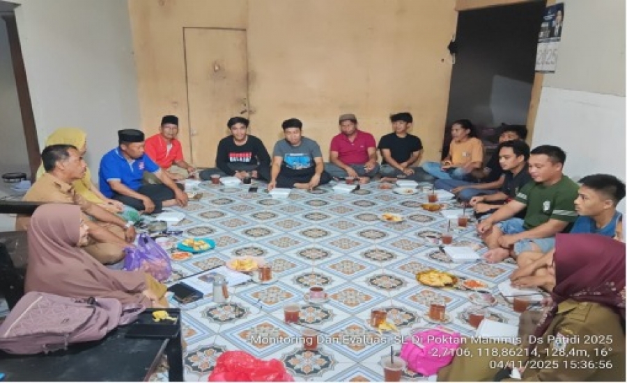 Mamuju — Dinas Perkebunan (Disbun) Provinsi Sulawesi Barat (Sulbar) melalui Bidang Prasarana, Sarana Perkebunan dan Kelembagaan (PSP-K) melaksanakan kegiatan pembinaan kelembagaan serta monitoring dan evaluasi terhadap implementasi hasil pelatihan budidaya kakao di Kelompok Tani Mammis, Desa Botteng, Kecamatan Simboro, Kabupaten Mamuju, Selasa 4 November 2025.