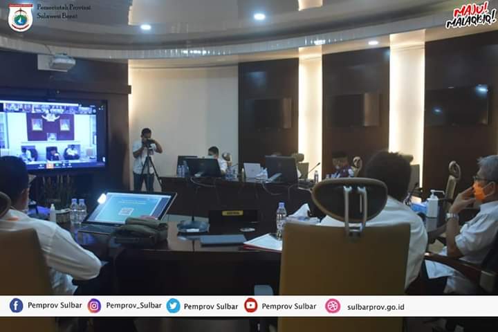 Rapat koordinasi yang bertujuan dalam rangka penanganan Covid - 19 tersebut, diikuti melalui Video Conference (VC), di ruang Oval lantai 3 Kantor Gubernur Sulbar.