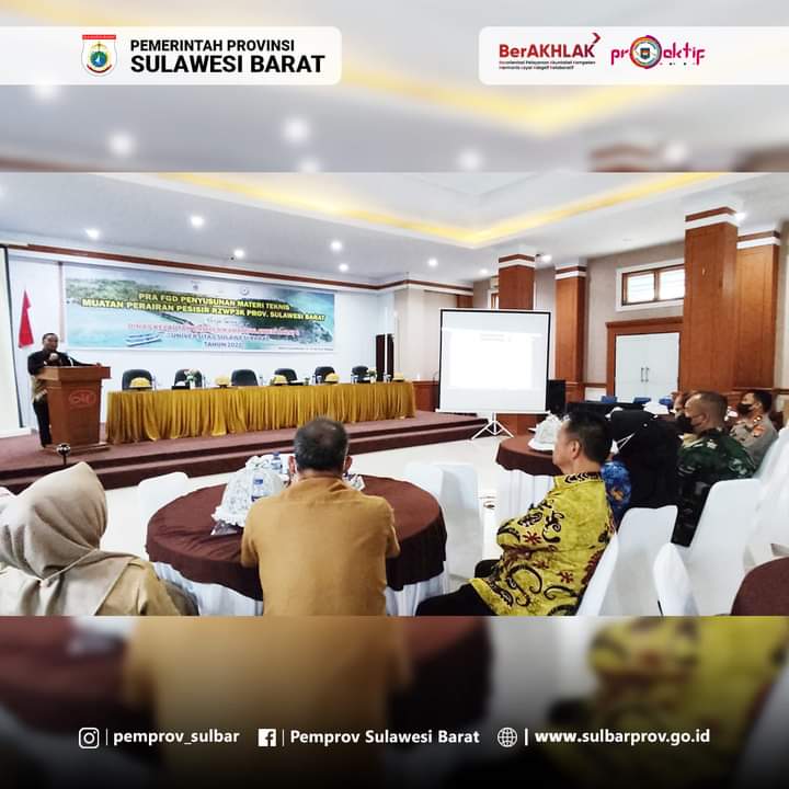 Mamuju- Asisten II Bidang Perekonomian dan Pembangunan Setda Sulbar Khaeruddin Anas, membuka kegiatan PRA Forum Grup Discussion (FGD) Penyusunan Materi Teknis Muatan Perairan Pesisir Rencana Zonasi Wilayah Pesisir dan Pulau-Pulau Kecil (RZWP3K) Provinsi Sulbar di Hotel Grand Mutiara, Jl. H. Abd. Malik Pattana Endeng, Rangas, Mamuju, Senin 18 Juli 2022